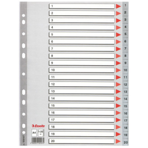 Przekładki ESSELTE plastik PP A4 szare 1-20