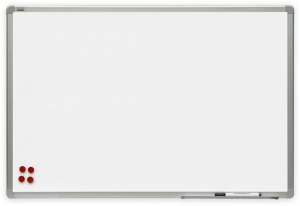 Tablica biała suchościeralna o powierzchni niemagnetycznej (melaminowej) lub magnetycznej (lakierowanej lub ceramicznej). Rama wykonana z profilu aluminiowego w kolorze srebrnym. wykończona eleganckimi. popielatymi narożnikami. Dla rozmiaru 150 × 100 cm i większych. tył tablicy wzmocniono blachą ocynkowaną. aby zapewnić jej stabilność. chroniąc przed wilgocią oraz wyginaniem. Dodatkowo produkt posiada wygodną półkę o długości 30 cm. która zmieści wszelkiego rodzaju przybory niezbędne podczas prezentacji. Bardzo łatwa i szybka w montażu. Istnieje możliwość zawieszenia tablicy zarówno w pionie. jak i w poziomie.