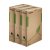 Wykonane w 100% z kartonu z odzysku; z 85% udziałem surowców pochodzących z odpadów konsumpcyjnych. Rozmiar pudeł zoptymalizowany do dokumentów A4. W naturalnym brązowym kolorze. bez użycia wybielaczy. W 100% do ponownego przetworzenia; posiadają certyfikat FSC. Nadruk wykonany przy użyciu ekologicznych farb bazujących na wodzie. Grzbiet 80 mm.