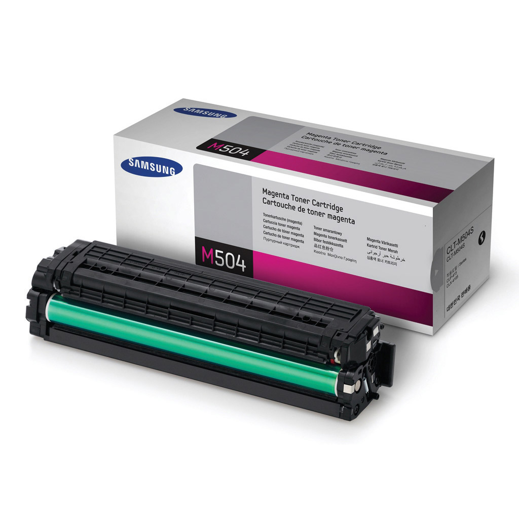 Oryginalny, purpurowy toner firmy HP do urządzeń drukujących Samsung.