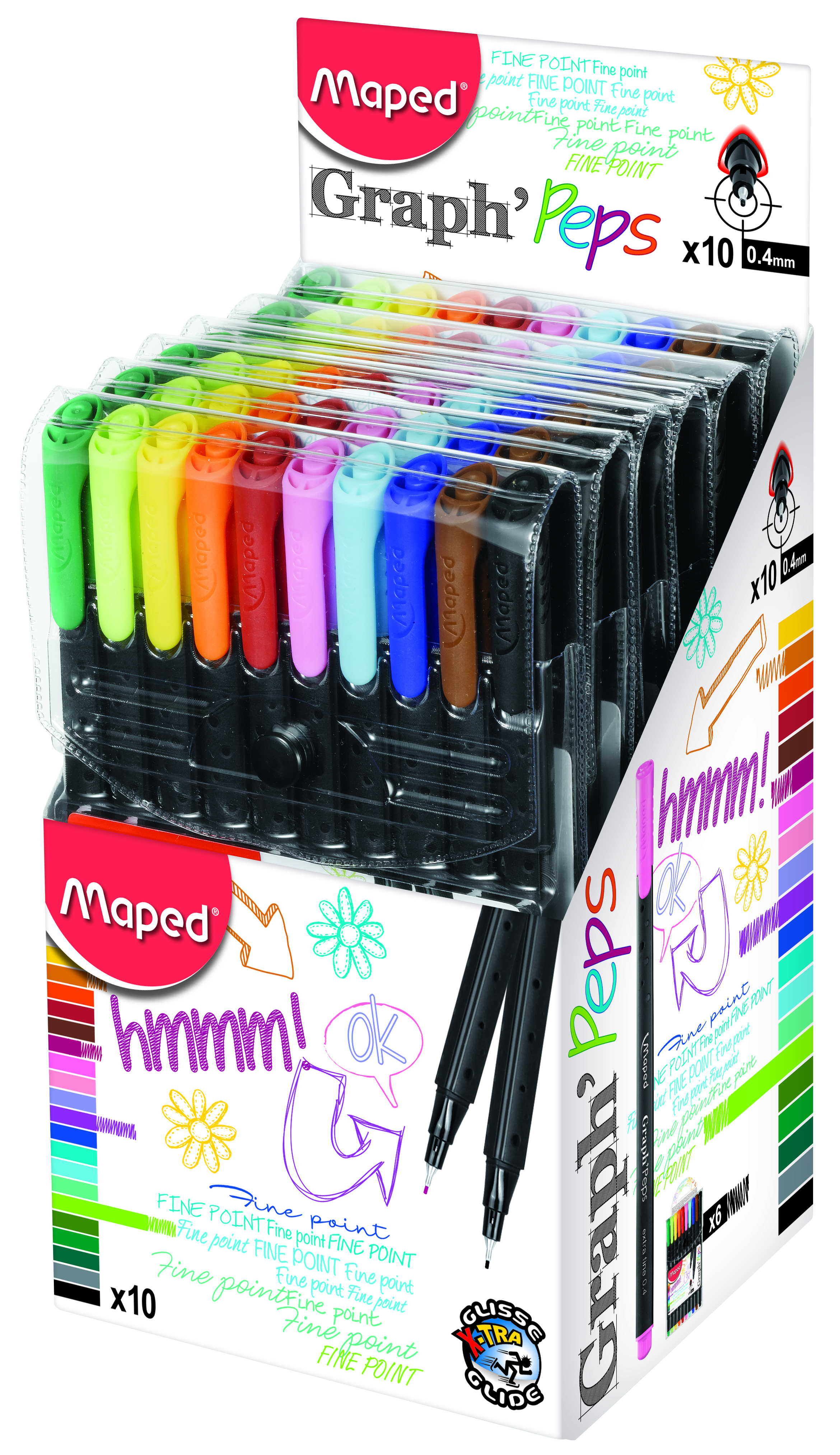 Cienkopis Graph_Peps. Uniwersalna linia cienkopisów dla każdego. do użycia w szkole. w domu i w biurze - końcówka oprawiona w metal - grubość końcówki 0.4mm - bezpieczna. wentylowana skuwka z klipsem -ergonomiczny. trójkątny kształt poprawia komfort pisania - etui 10 kolorów