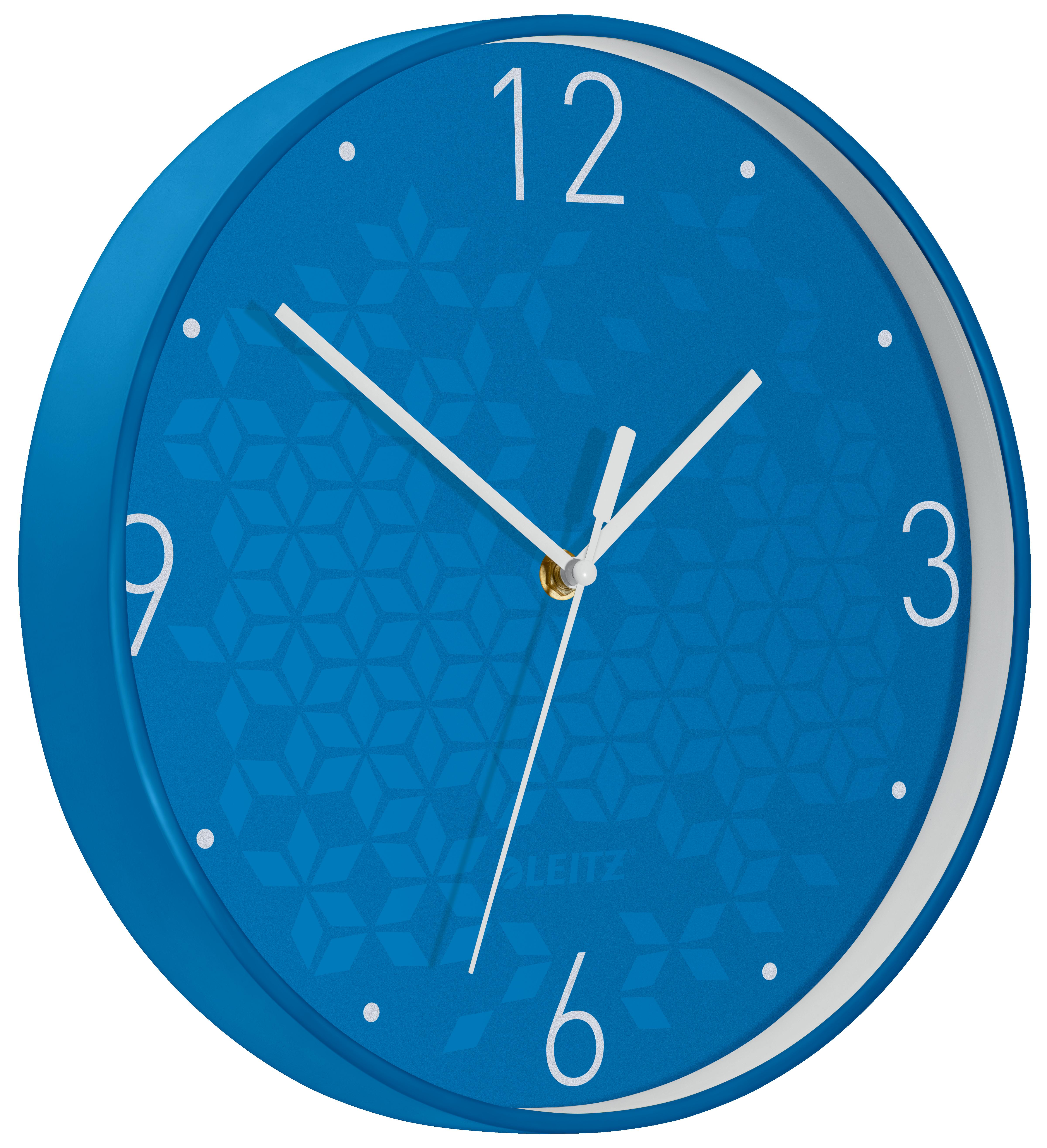 Element kolekcji Leitz WOW oferującej szeroki wybór stylowych produktów biurowych dostępnych w przykuwających wzrok kolorach i wyrafinowanym wzornictwie. które pozwoli Ci wyrazić swoją osobowość. Zaprojektowane z myślą o osobach pracujących w biurach lub często przemieszczających się_Średnica tarczy 29 cm_Cichy. kwarcowy mechanizm_Konstrukcja z solidnej. plastikowej. dwukolorowej ramy ze szklanym frontem_Tarcza z geometrycznym wzorem w kolorach WOW i dużymi cyframi_Trzy czarne wskazówki zegara są dobrze widoczne na tle tarczy_Z wygodnym otworem do zawieszania_Działa na 1 baterię AA (niedołączana do zestawu)