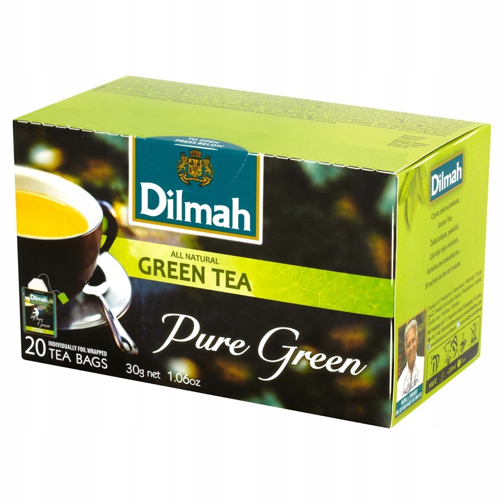 Zielona herbata Dilmah Pure Green Tea to napój delikatny i orzeźwiający. Napar ma kolor bladożółty, co świadczy o wysokiej jakości herbaty. Łagodny i gładki smak stopniowo ustępuje miejsca lekko wędzonej końcówce. Wspaniała herbata codzienna o właściwościach oczyszczających.