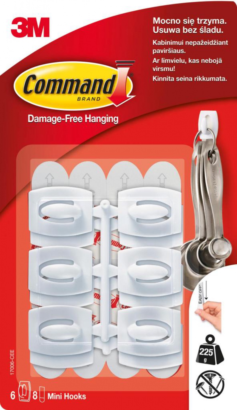 Haki wielokrotnego użytku COMMAND™ (17006 CLR), małe, 6szt., transparentne