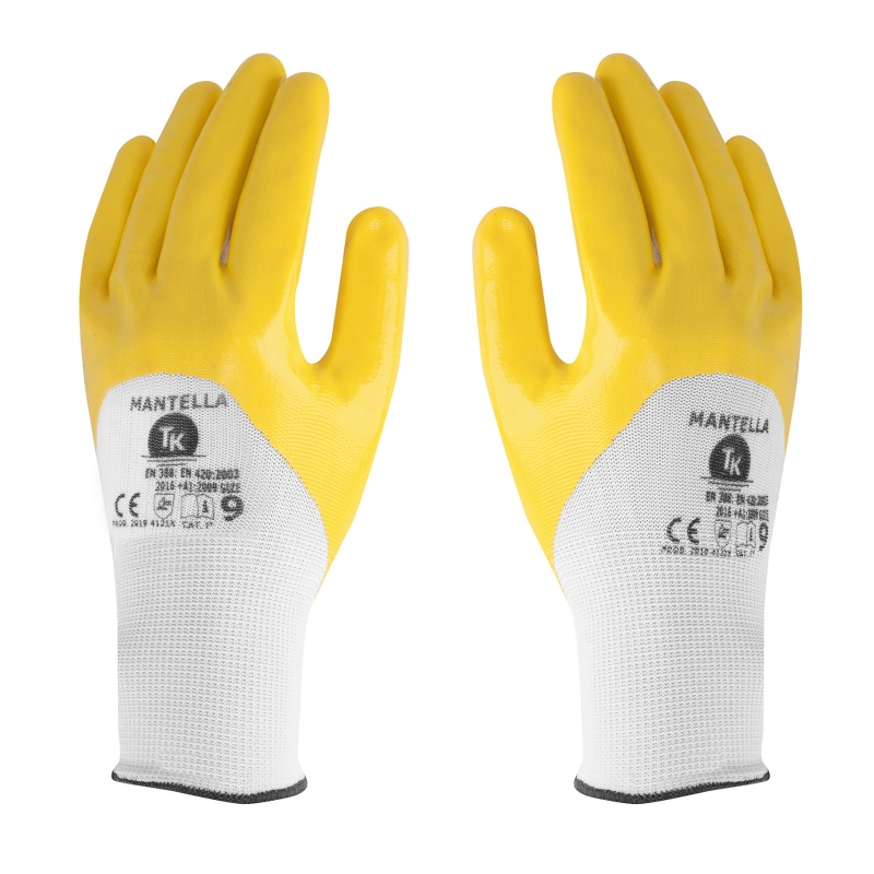 MANTELLA – dziana rękawica ochronna pokryta dość grubym żółtym nitrylem. Przeznaczona do prac mechanicznych w zaolejonym środowisku.