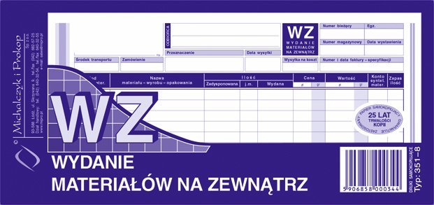 351-8 WZ Wydanie materiałów na zewnątrz